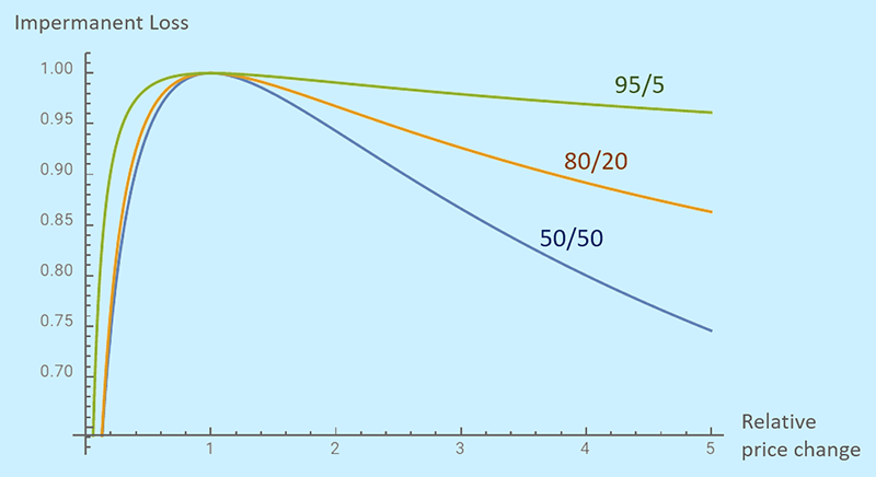 These asset ratios will have an impact on impermanent losses. For example, based on the 80/20 AAVE/ETH pool, if the price of AAVE rises relative to the price of ETH, then most of the risk exposure of the LPs in the pool is AAVE (accounting for 80% of the pool). So the impact of impermanent loss caused by price fluctuations is less than that of LPs providing 50/50 liquidity for the AAVE/ETH pool.